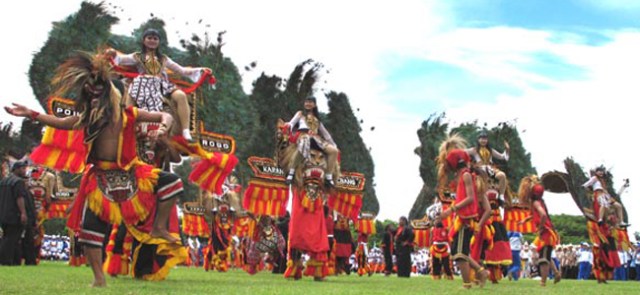 Reog Ponorogo – Reog is one of the artistic culture that comes from Ponorogo, Java East. The city and this it is the real origin of Reog. Ponorogo city gate was decorated by the Warok figure and gemblak, two figures involved appear in shown Reog. Reog is an art that is still very thick with mysticism things mystical and powerful. Movements in the dance, Reog Ponorogo describe the facts of the man in the way of life began was born, lived, until his death. His philosophy is very deep.